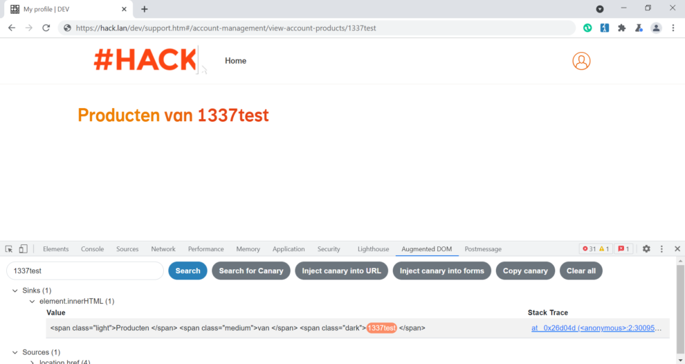 Additionaly, we will be using Burp Suite’s DOM Invader to instrument the Document Object Model (DOM). We can learn more about what source allows user-controlled input by using a unique string that’s used to see where our user input is reflected inside a sink.